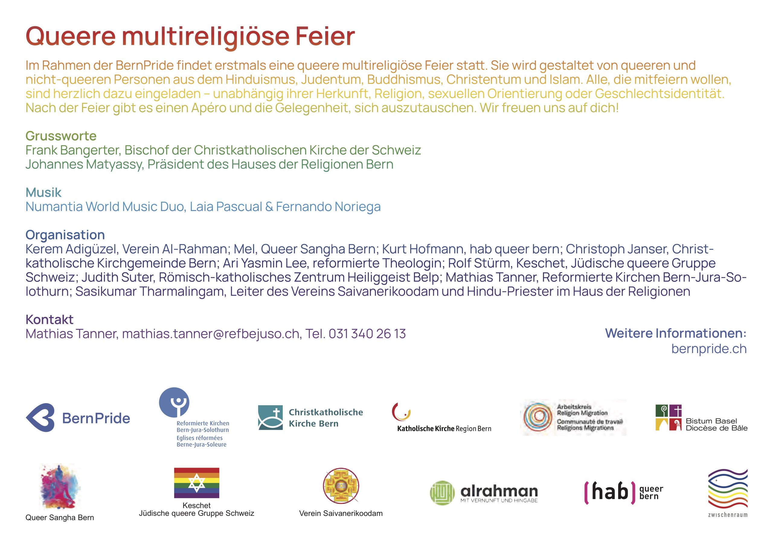 Queere multireligiöse Feier in der Berner Altstadt vom 03.08.25