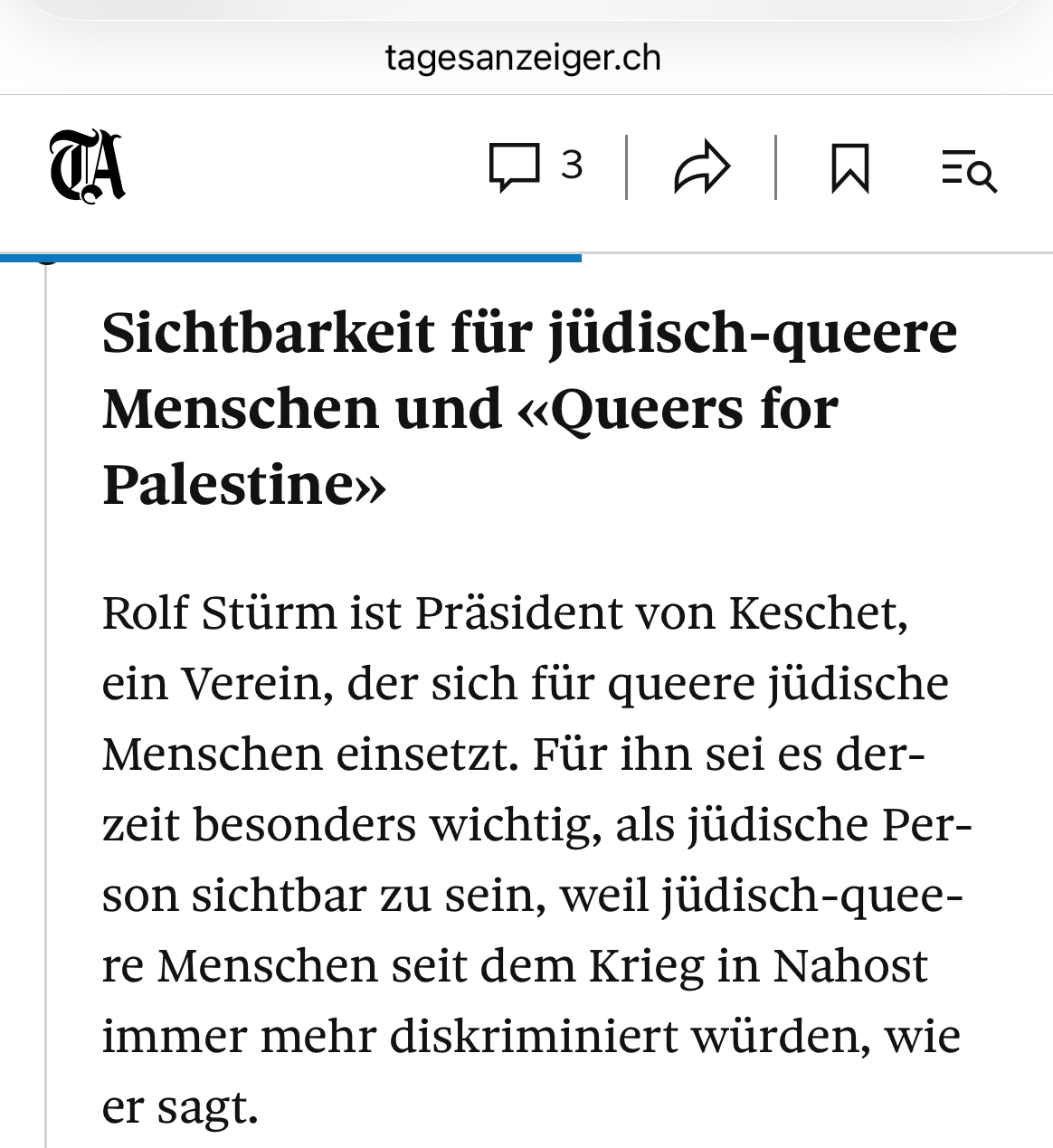 Ein Mitglied der «Queers for Palestine» folgte uns im Marzili in einem T-Shirt mit Terroristenkopf-Sujet und klebte Stickers mit «Abolish Zionism» am Wegrand. Wir haben es schriftlich dem Awaress-Team und nachträglich mündlich einem Angestellten von «Taktvoll» gemeldet und warten, wie das Awareness-Team dieses unfreundliche Verhalten einstufen und sanktionieren wird.