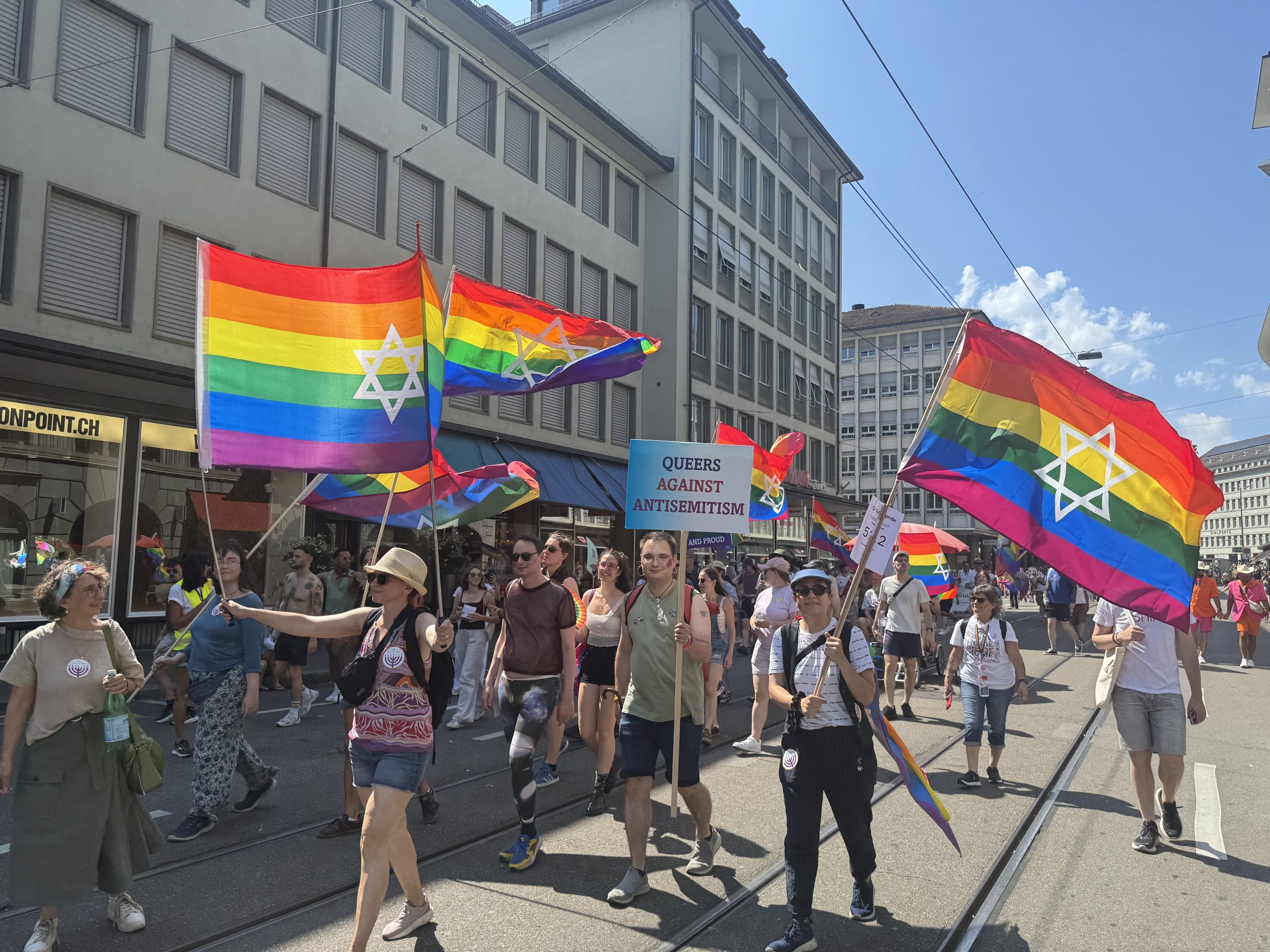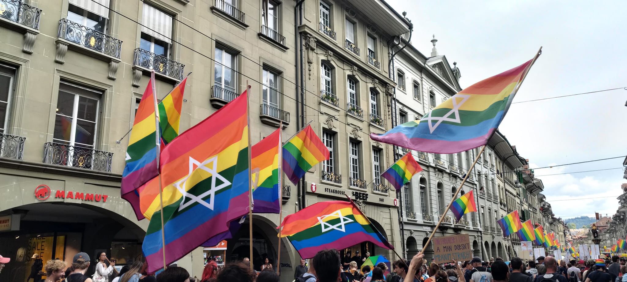 Wer kennt sie nicht, die jährliche Lesbian-Gay-Bisexual-Transgender-Intersexual- oder kurz Queer- (LGBTIQ) Pride in Tel Aviv, das quasi Flaggschiff des liberalen Israels? Aber auch in Jerusalem und kleineren israelischen Städten finden Pride Paraden statt, dort oft gegen den Widerstand lokaler Behörden. Im Jahr 2024 war alles anders. Erstens waren die Prides in Israel wegen des Gaza-Krieges viel kleiner und zweitens schufen an westlichen Demos die «Queers for Palestine» mit ihrem Ruf, die Juden «from the river to the sea» zu vertreiben, eine bedrohliche Atmosphäre für jüdische Teilnehmende. Auf die Frage „Jetzt erst recht oder absagen?“ in jüdischen Chat-Gruppen war die einstimmige Antwort „Jetzt erst recht!“. In Zürich und in Bern gab es 2024 jüdische Marschgruppen für LGBTIQ-Menschen und deren Freunde. In Bern war sie unter dem Namen Keschet (der jüdische Regenbogen der Schweiz) angemeldet.