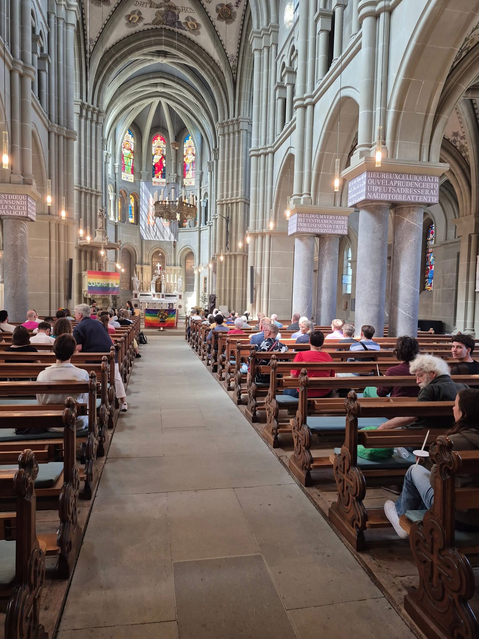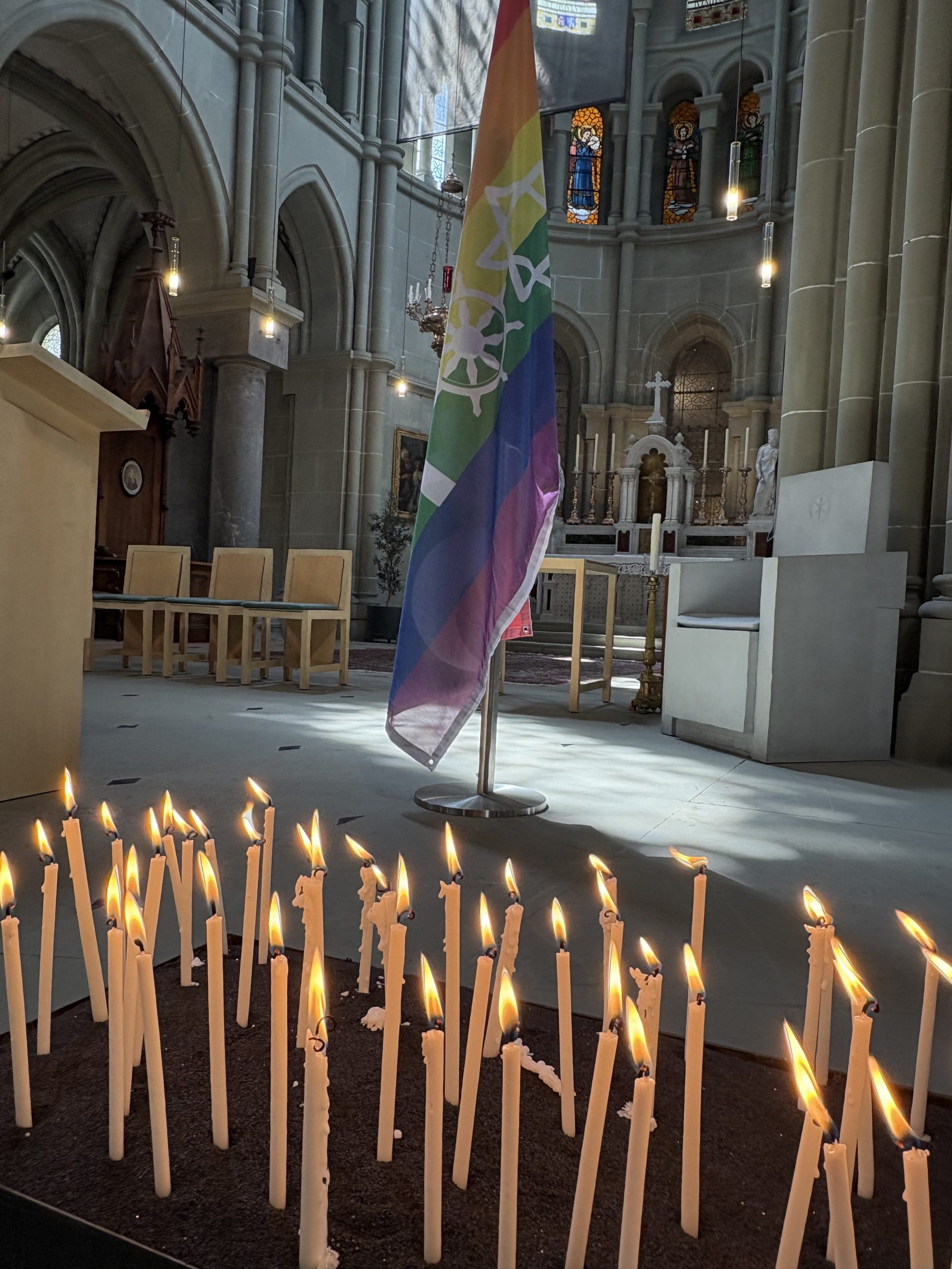 Krönender Abschluss der Pride-Saison 2025 war für Keschet die Feier in der St. Peter und Paul Kirche. Zwei Keschet-Mitglieder haben die Feier aktiv mitgestaltet, einige unserer Mitglieder haben mitgefeiert. Wir haben – treu unseren Statuten – für die Sichtbarkeit jüdischer Queers im religiösen und queeren Raum gesorgt.