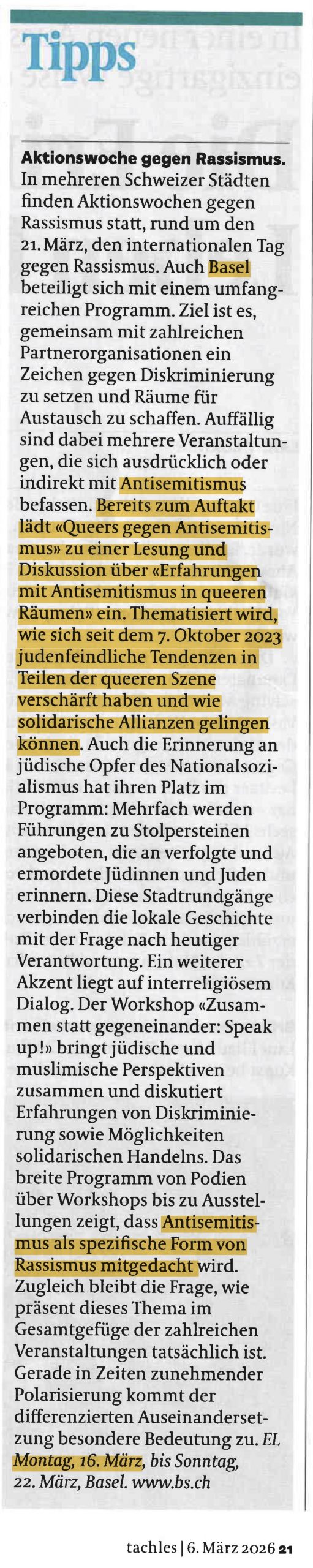 Beitrag zur Basler Aktionswoche gegen Rassismus